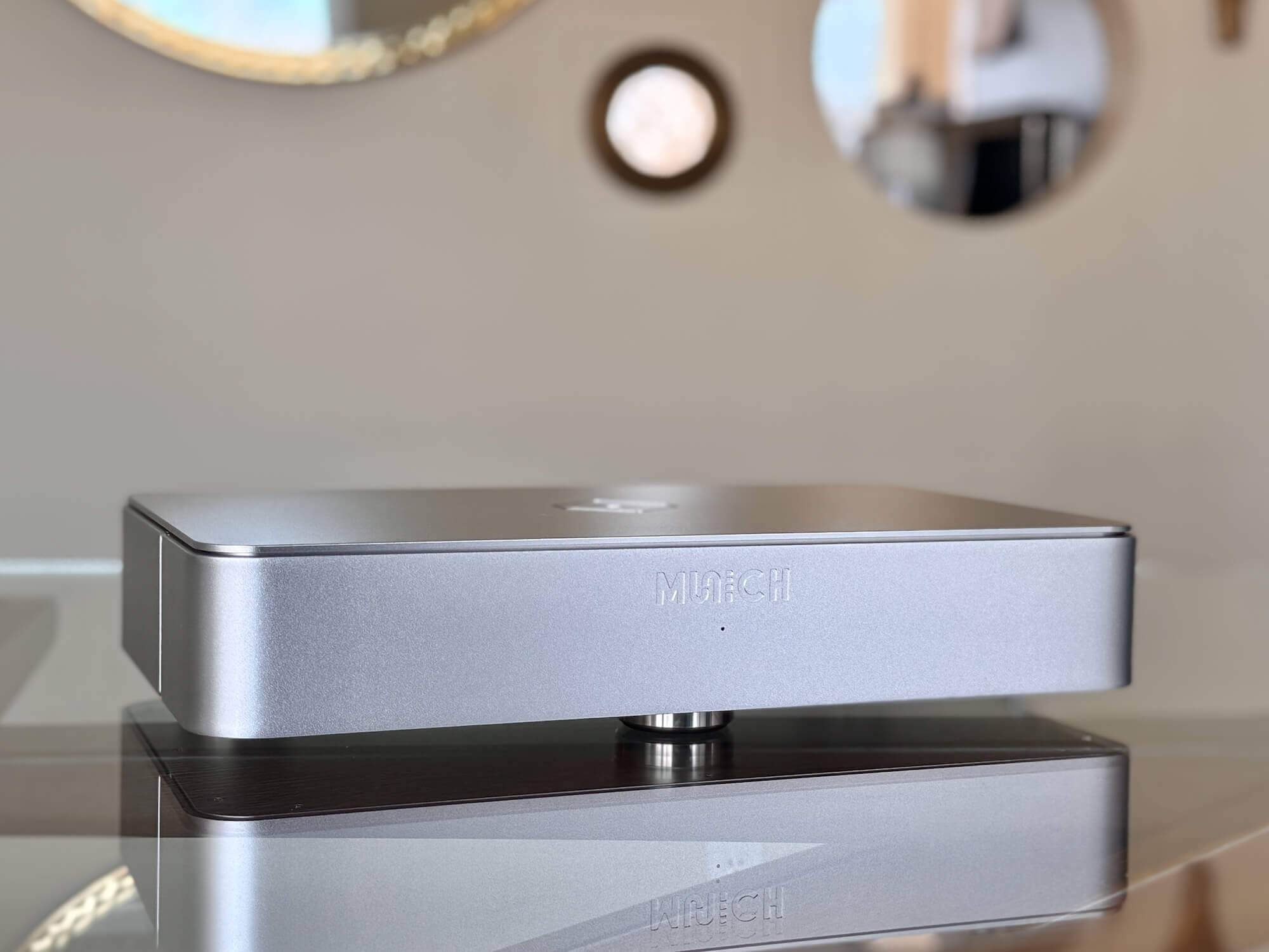 More about the unit: The Silent Angel Munich MU is a high-performance network streaming DAC that advances the capabilities of Silent Angel’s acclaimed Munich platform with a sophisticated double-layer aluminum chassis inspired by their flagship Bonn NX network switch and Genesis GX master clock — delivering superior structural integrity, enhanced resonance damping, and effective electromagnetic interference isolation in a single, elegant component. At its core, a powerful six-core processor paired with Silent Angel’s purpose-built VitOS operating system is optimized exclusively for music playback, achieving the kind of low-latency, high-stability streaming performance that general-purpose computing hardware simply cannot match. A high-precision femtosecond TCXO clock with fully optimized peripheral circuitry minimizes network latency and jitter to vanishingly low levels, while a 10 MHz BNC clock input with an internal/external selector switch allows seamless integration with an external master clock for even greater timing precision as a system evolves.