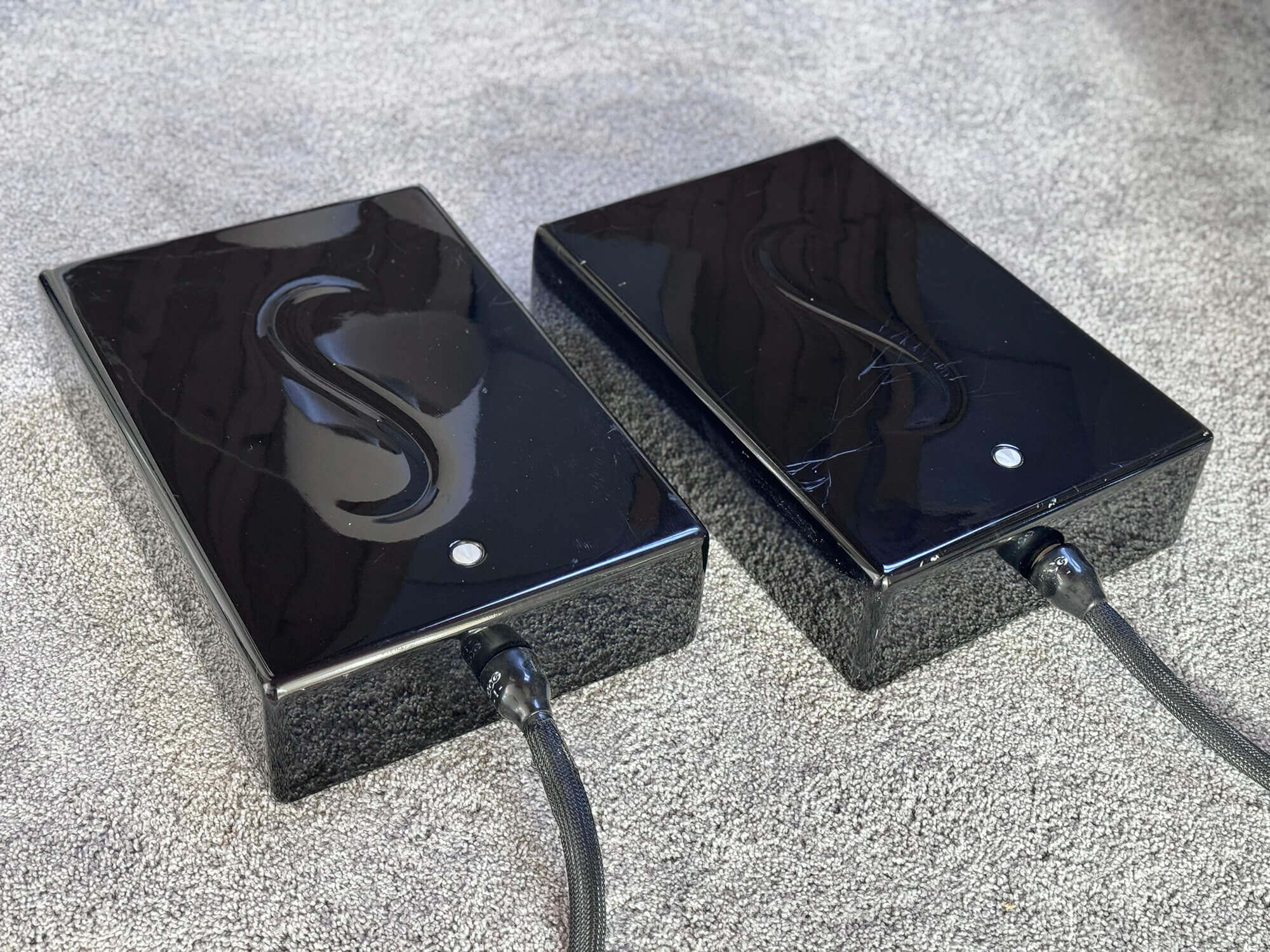 The speakers come with the external crossover feature, which is lovely as it provides the opportunity to switch cables very easily, further isolate the crossovers for a lower noise floor, free up the cabinet resulting in less resonance, and also allowing to bypass the crossovers completely if you want to control the speakers with DSP. Grilles (not pictured, but in perfect shape) and footers and spikes (also not pictured) also come with the speakers. The Spirits will ship via freight in their custom crates.